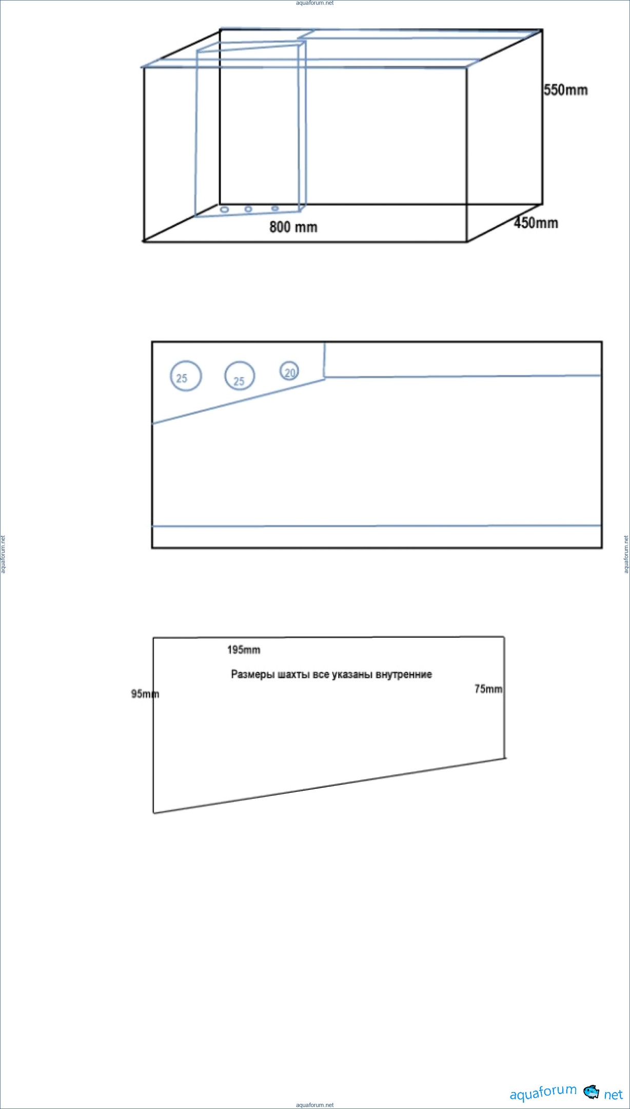 Завтра буду заказывать аквариум у акватики и есть ночь )), чтобы окончательно определиться. аквариум планирую размерами 800*43*55в, из стекла 8-ка, по этому будут ставить ребра жесткости и из-за этого собственно вопрос, будет ли ребро жескости мешать трубам слива и возврату ? Буду делать без аварийки, только 2 отверстия, планирую установить трубы и потом приклеить шахту, чисто теоретически как я понимаю, ее можно не делать, к примеру 20 см*20 см. какую минимальную шахту можно вообще сделать при условии что там потом станут трубы и тройник ? Система будет Дюрсо.
