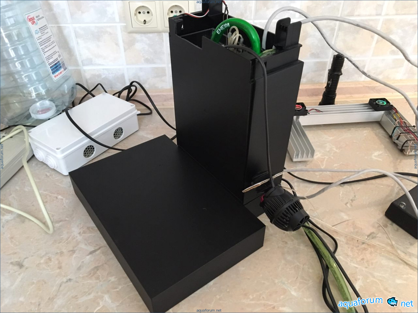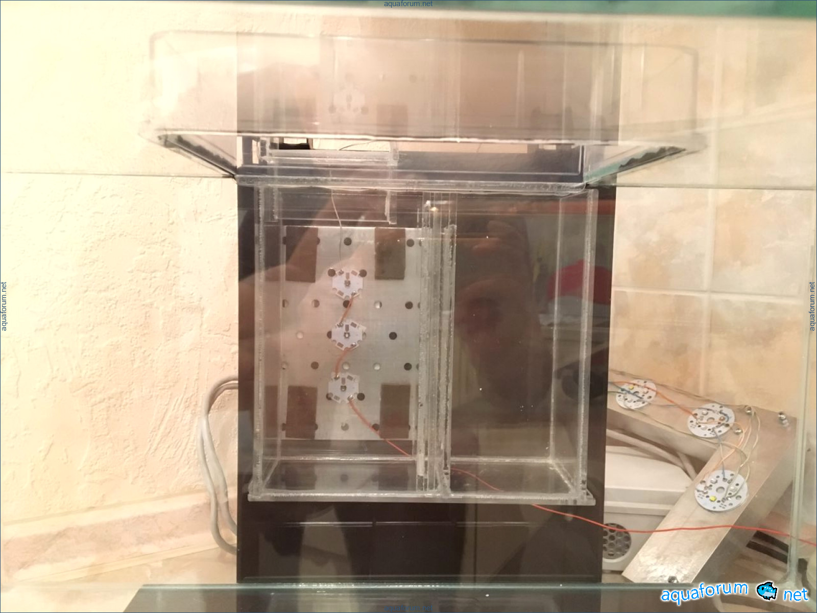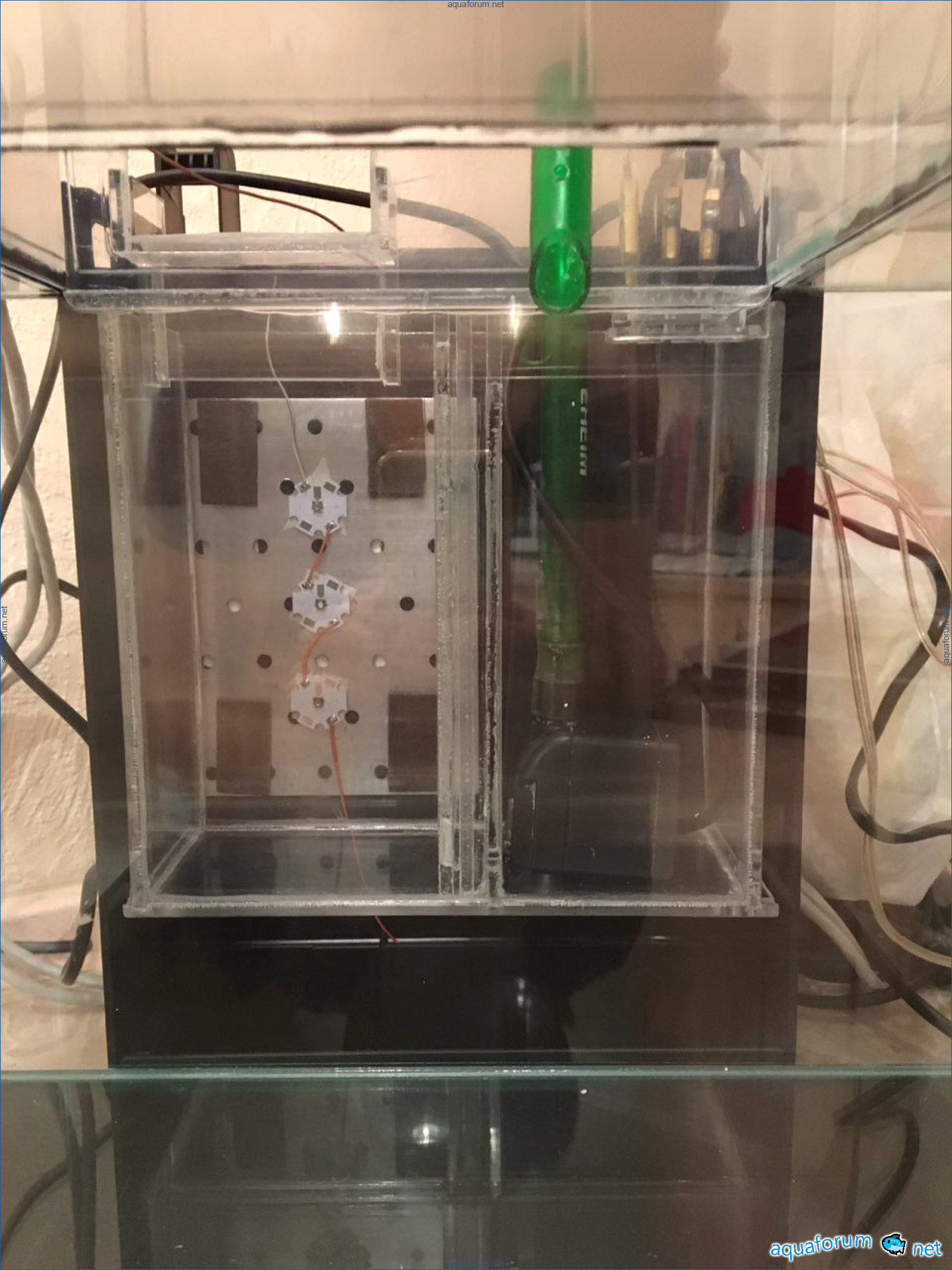 Таким образом в результате получится мини система без торчащих проводов и оборудования в дисплее. Как стабилизируется, не будет требовать особого ухода кроме подмен раз в 2-3 недели + осмос в бак.