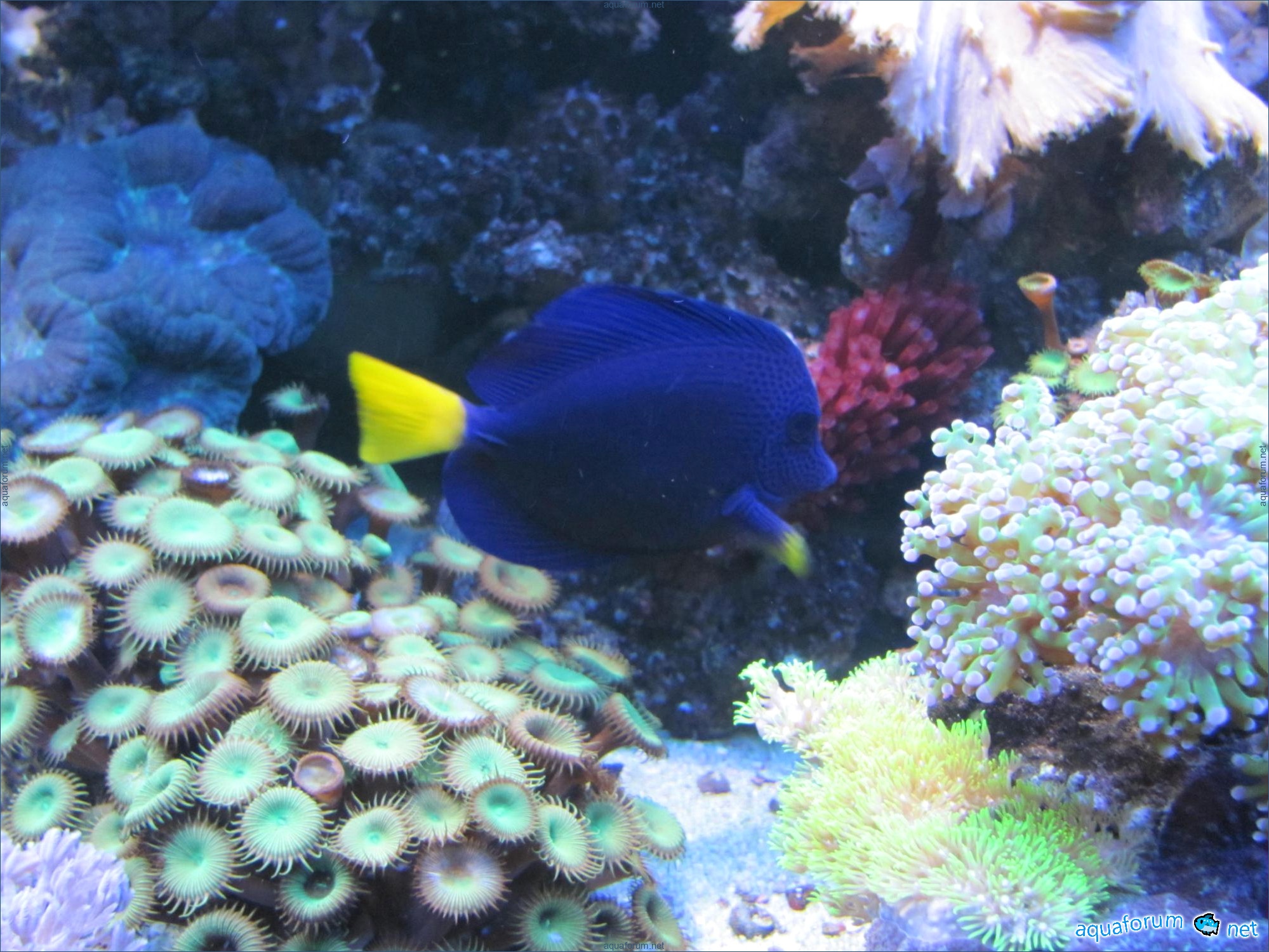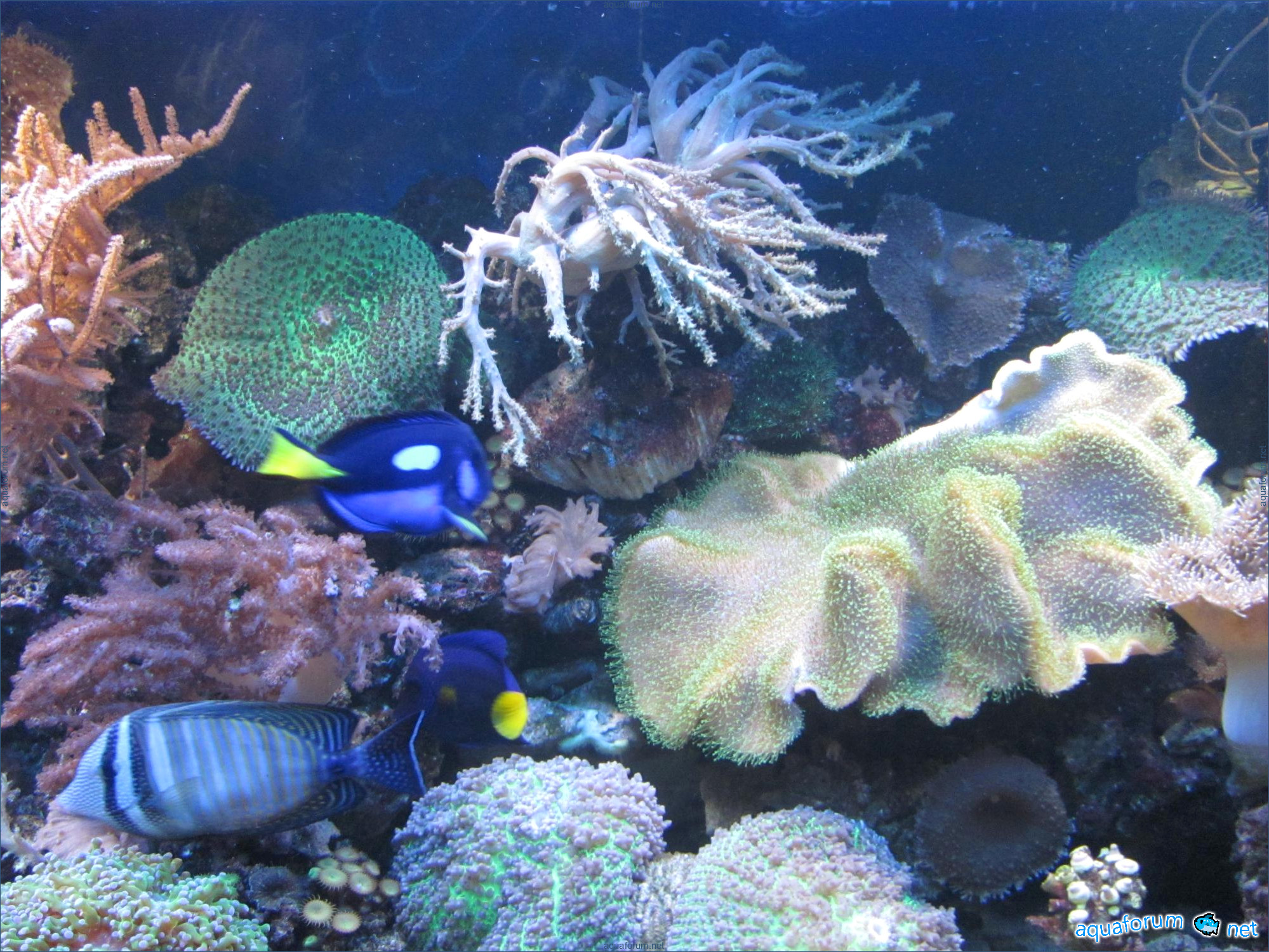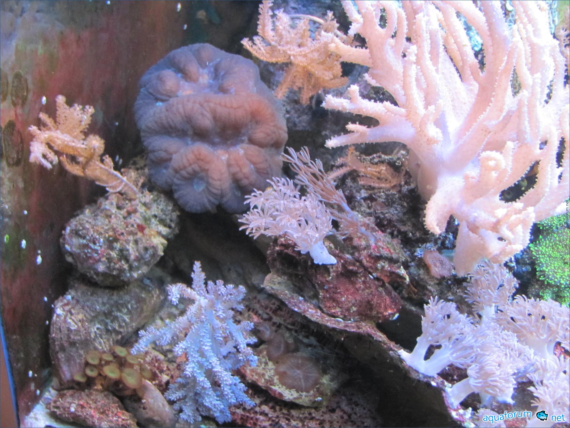 இந்த தலைப்பை 2 பகுதிகளாக பிரித்துள்ளேன். முதல் பகுதியில் மீன் குளத்தைப் பற்றிய பேச்சு இருக்கும், இரண்டாவது பகுதியில் மீன் குளத்தைப் பற்றிய பேச்சு இருக்கும். எ். எனவே, மீன் குளம், 900 லிட்டர் கொள்ளளவு, ரிஃப்யூஜியம், பாலித்தீன் அறை மற்றும் ஏரோபிக் வடிகட்டியுடன், மேலும் டெனிட்ரிபிகேஷனும் உள்ளது. ஹைட்ரோ கெமிக்கல் அளவுகள்; Nh4-0 NO2-0 NO3-10 PO4-0.02 PH-8.2 Kh-12 Ca-420மி.கி./லி Mg-1300மி.கி./லி. கோடைகாலத்தில் தண்ணீர் வெப்பநிலை 28 டிகிரி செல்சியஸ், குளிர்காலத்தில் 26 டிகிரி செல்சியஸ்.ஒரு மாதத்திற்குஒரு முறை 60 லிட்டர் தண்ணீர் மாற்றப்படுகிறது. Red Sea Coral Pro Salt உப்பு பயன்படுத்தப்படுகிறது. Tropic in, pro-special mineral-ம் பயன்படுத்தப்படுகிறது. தேவைப்பட்டால் பேலிங் செய்யப்படுகிறது. அகவாரியம் 100% வாழ்கை கற்களின் (லைவ் ரோக்ஸ்) மீது தொடங்கப்பட்டது, உலர் மீன் குளக் கற்கள் அதிகம் பயன்படுத்தப்படவில்லை. ஸ்கிமர் ஆக்சிஜன் ரியாக்டராக செயல்படுகிறது, அதாவது பாரைன் பிரிவு செயல்பாடு இல்லை அல்லது தேவைக்கேற்ப குறைக்கப்படுகிறது. குளத்தில் மென்மையான மற்றும் கடின கொக்கோலிகள் வாழ்கின்றன, அவற்றில் 2 வகை எஸ்பிஎஸ் உள்ளன. தொடர