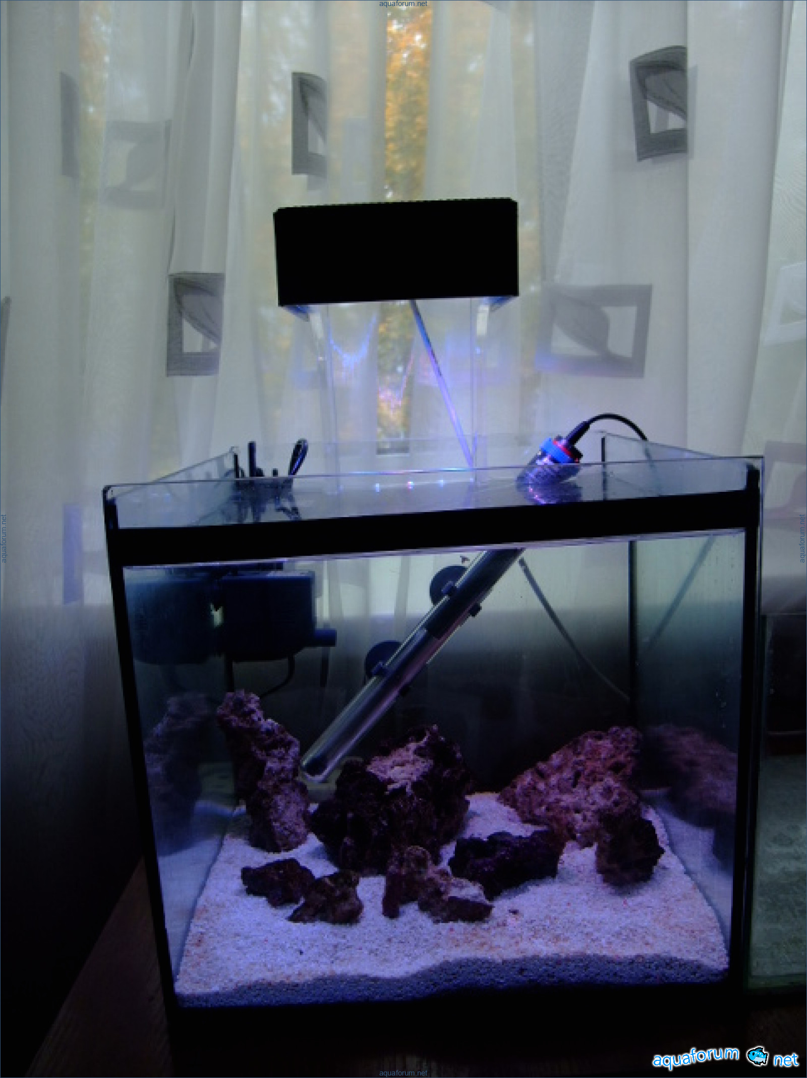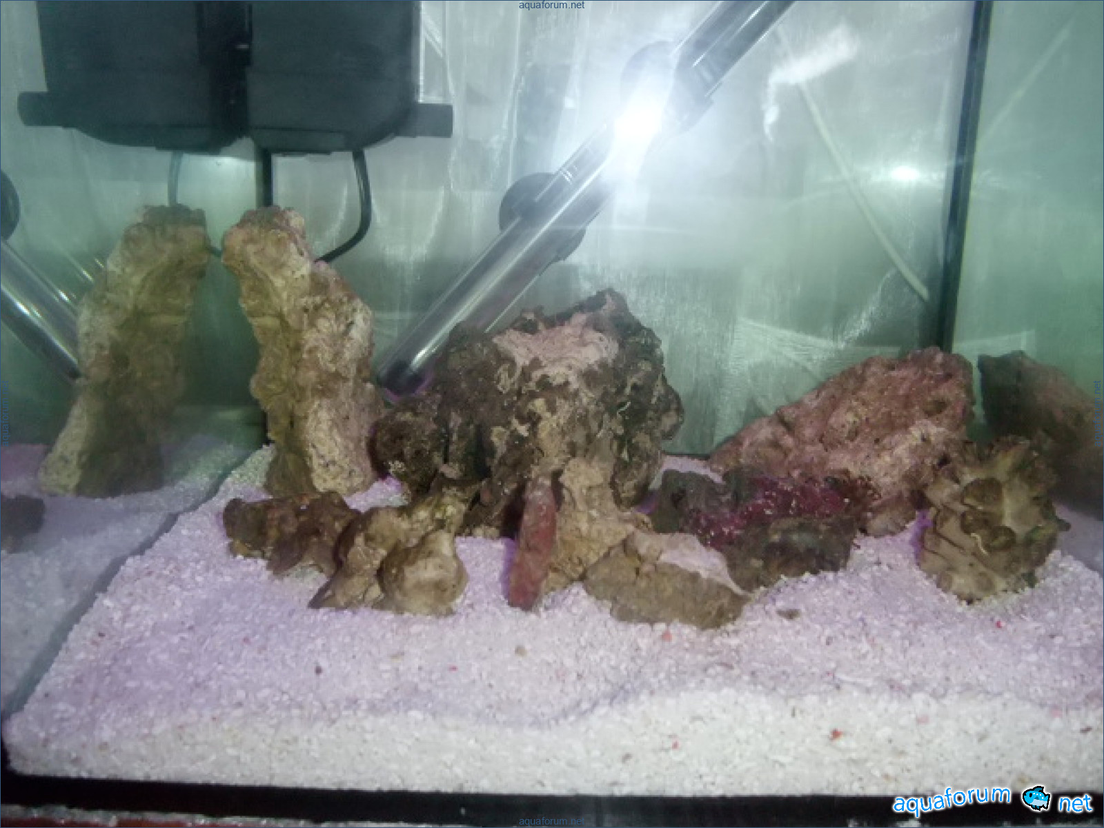 அனைவருக்கும் வணக்கம், திடீரென்று ஒரு யோசனை வந்தது - அவசரமாக ஒரு சிறிய கடலை உருவாக்க முடிவு செய்தேன். கிடந்த 4-6 மிமீ தடிமன் கொண்ட கண்ணாடித் துண்டுகளால் ஒரு மீன்தொட்டியை ஒட்டினேன். அது தோராயமாக 30-30-30 அளவில் வந்தது. அவசர உப்பிடும் வேலையை அடுத்தடுத்த நீர் மாற்றத்துடன் செய்தேன். சாங்கோவிடம் 20 லிட்டர் நீரும், பெரிய கற்களும் வாங்கினேன். அவருக்கு மிகப்பெரிய நன்றி. என்னிடம் இருந்த மணலை ஊற்றி, ஓட்டத்திற்காக ஒரு பம்பை வைத்தேன், இருந்த சூடாக்கியை வைத்தேன். இரண்டு நாட்களில் வெளிச்சம், எல்லாம் தயார். இப்படியே ஒரு சிப்பந்தியாகிவிட்டேன். இதில் எளிய பகுதி முடிந்தது. இது என் முதல் கடல், அதனால் தான் இந்த நீருக்கடிய பாலைவனத்தை நானோ ரீஃபாக மாற்ற உதவி கோரி மன்றத்தை அணுகுகிறேன்.