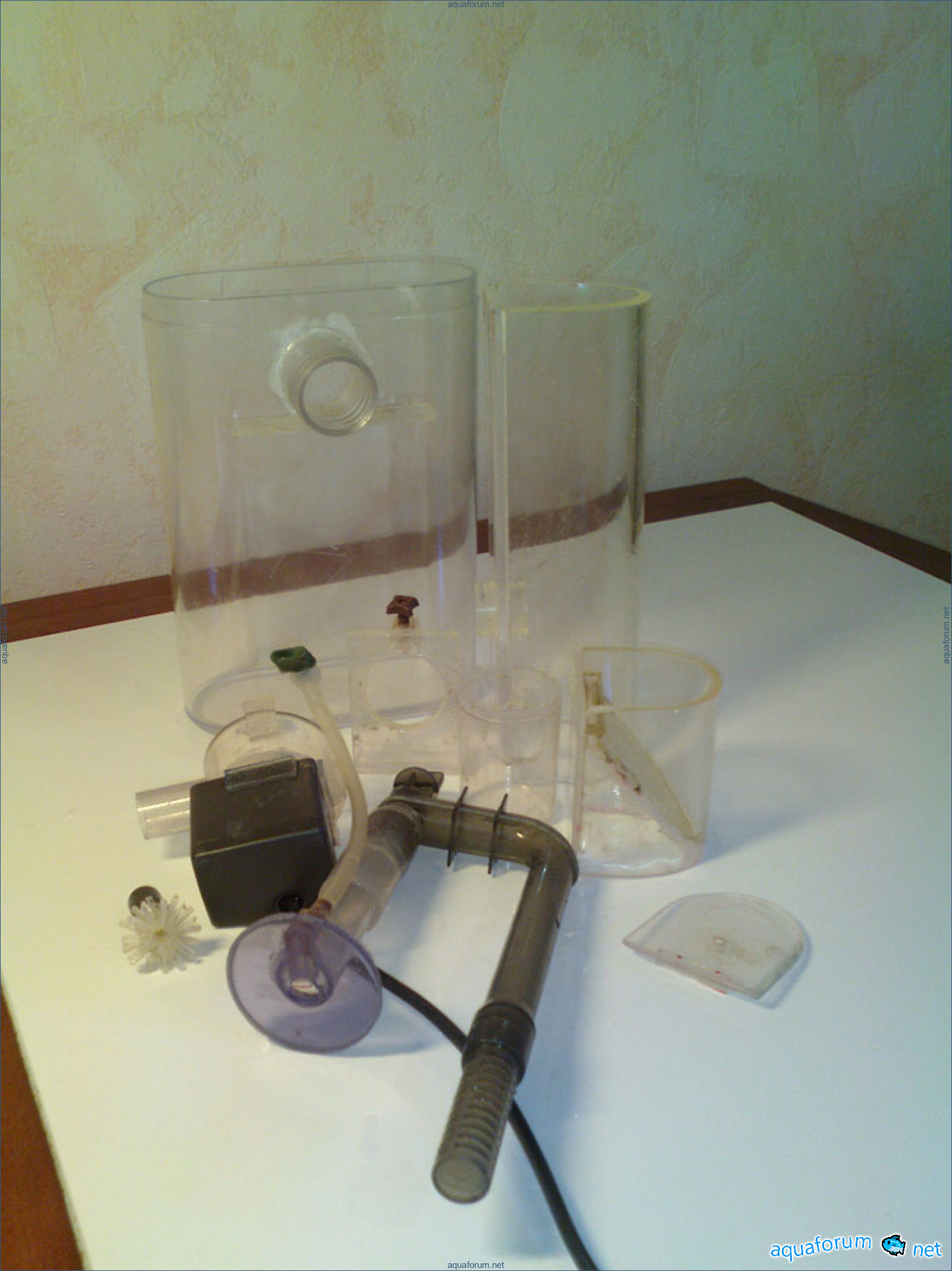 శుభోదయం. చివరకు, చాలా ఆలోచనల తర్వాత, చిన్న అక్వేరియం కోసం మెరుగైన స్కిమ్మర్ మోడల్ను నిర్మించాను. అందువల్ల, 5 వాట్ అథ్మాన్ పంప్ ఉపయోగించబడింది. అక్వ్రిల్ కట్లు మరియు కొన్ని ఇతర చిన్న వస్తువులు. నిర్వహణ సౌలభ్యం మరియు నాణ్యమైన పనిపై ప్రధాన దృష్టి పెట్టబడింది. నా అభిప్రాయంలో, రెండు లక్ష్యాలు సాధించబడ్డాయి. పంప్ పెద్ద రోటర్ కేబిన్తో సজ্জితమైంది, స్వయంగా రోటర్ హారిజాంటల్ స్పైక్స్తో రెండు వరుసల కవలతో సজ্জితమైంది. స్కిమ్మర్ కప్పు కిందకు పైకి కదులుతుంది, ఇది "ఎండ" ఫోమ్ను సర్దుబాటు చేయడానికి అవకాశం ఇస్తుంది. నిర్వహణ చాలా సులభం, డెల్టెక్ MCE-300 లాగా: కప్పు తీసి, కడిగి, సిద్ధంగా ఉంది. స్కిమ్మర్ నాకు చాలా సంతృప్తికరంగా ఉంది, ఇది ఆనందించక తప్పదు.... తరువాత, పరికరాన్ని స్పష్టంగా చూపించే ఫోటోలు ఉన్నాయి:
