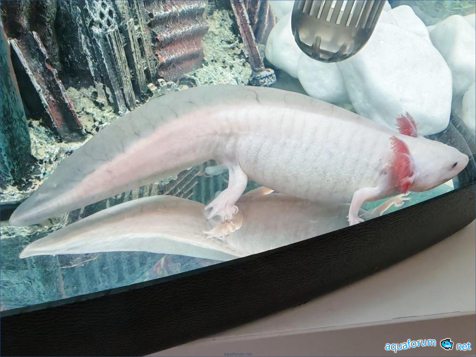శుభోదయం, తదుపరి సమస్య: - అక్సోలోటల్, వయస్సు సుమారు 5 నెలలు - 50 లీటర్ల కుండలో మొక్కలు లేకుండా ఒంటరిగా నివసిస్తున్నాడు, ఎయిరేషన్ మరియు బాహ్య ఫిల్టర్తో - గత రెండు వారాలుగా అతనికి ఆహారం తినడం తగ్గింది మరియు పొట్ట పూసింది. అతను పాత ఫిల్టర్ నుండి రబ్బరు సక్రియాన్ని తినే అవకాశం ఉందని అనుమానం వచ్చింది, కానీ అది మాయమైంది అని మేము గమనించిన తర్వాత 3 వారాల కంటే ఎక్కువ సమయం గడిచింది, మరియు అది దృష్టిలో కనిపించడం లేదు. నీరు చాలా మచ్చలతో ఆకుపచ్చగా ఉంది, ఇది అధిక కాంతి వినియోగం వల్ల అని మాకు వివరించారు, మేము పూర్తిగా నీటిని మార్చాము మరియు దీర్ఘకాలం దీపాన్ని ఉపయోగించడం లేదు. మచ్చల నీటిలో అతను అంతగా చెడు అనుభవించలేదు, చివరి మార్పు తర్వాత అతని చురుకుదనం చాలా తగ్గింది. సాధారణ మలము చాలా కాలంగా లేదు, అది రేకుల రూపంలో ఉంది, ఆకుపచ్చ నీటిలో ఉన్నప్పుడు ఆకుపచ్చగా ఉంది, ఇప్పుడు గ్రే పారదర్శకంగా ఉంది. అతను తన జీవితంలో ఎప్పుడూ కాపెన్ ఫుడ్ తినాడు, నిన్న అతనికి చీమలు ఇచ్చాము - తినడం లేదు. సలహా మరియు సహాయం కోసం కృతజ్ఞతలు.