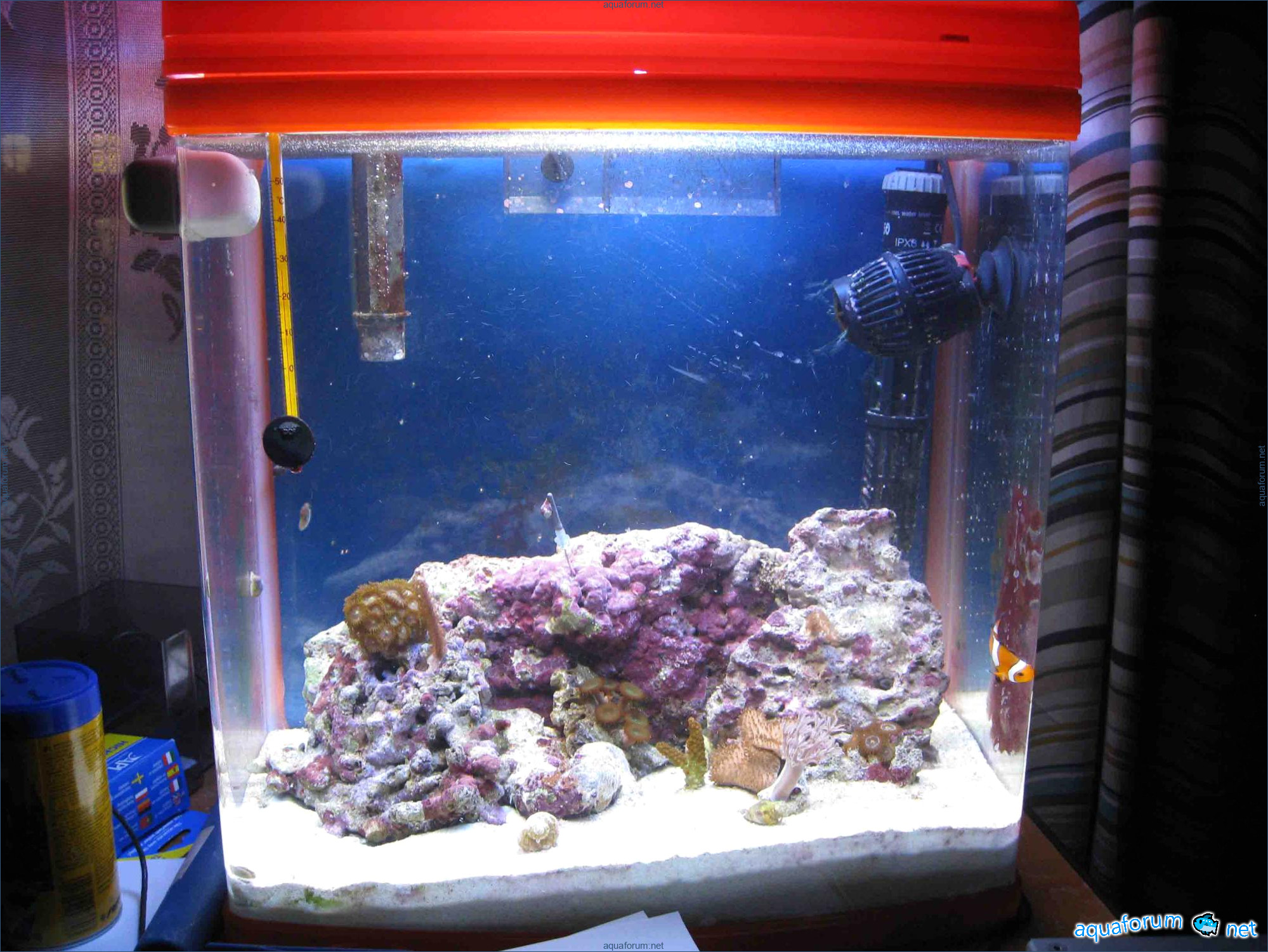 కొంచెం నా మినిక్ గురించి కూడా చెప్పడానికి నిర్ణయించాను, కానీ చెప్పడానికిఏమీ లేదు. అక్వేరియంఇప్పటికే మూడు నెలలు పనిచేస్తోంది. పరికరాలు: 1) రెడ్ సీ ప్రిజ్మ్ పెన్నర్, 2) కరాలియా నానోప్రవాహ పంప, 3) ఒక వేడి పెట్టె, 4) రెండు 20 వాట్ల ఆర్థిక లైట్లు, ఒకటి 6400 కెల్వین, రెండవది ఆక్టినిక్.ప్రాణులు: 1) రెండు రాళ్ళపై జూనాంథస్, 2) ఫోటోసింథెటిక్ సాఫ్ట్ గార్గోనియా, 3) ఒక సార్క్, 4)6 పాలిప్స్ పొలిటోలియా, 5) ఒకఆక్రోపోరా, 6) ఒక క్సెనియా, 7) రెండు చేపలు - గోబియోడాన్ మరియు క్లౌన్, 8) రెండు ఒంటరి చేపలు - ఒక టర్బో మరియు ఒక స్ట్రోంబస్. జీవక్రమం దాదాపు 3.5 కిలోలు, 7 కిలోల అరగొనైట్ ఇసుక. అది మంచిది కాదు, కానీ అది ఆవిష్కరణ దశలో ఉంది. నేను మృదుల కోసం ప్రధాన జీవక్రమం పైన ఒక బాల్కనీని తయారు చేయడానికి చూస్తున్నాను, కానీ స్థలం లేదు, కాబట్టి ఇది చాలా అస్వస్థతగా ఉంది. నేను కొంత అక్వేరియం ఫోటోలు తీశాను, కానీ తీయడానికి ఏమ