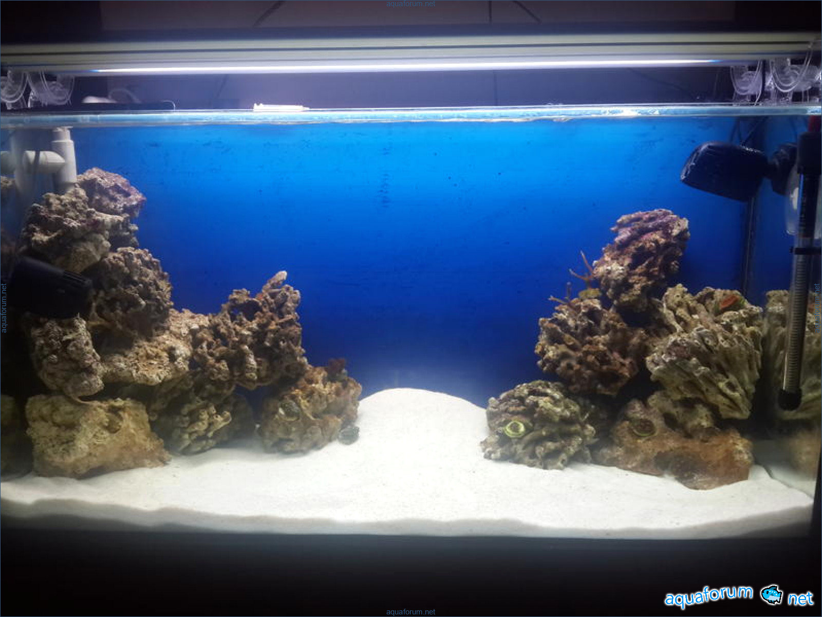 Merhaba. Her şey YouTube'daki bir video ile başladı ve kendi akışında ilerledi. Akvaryumu ve osmozu (yerli, geçirgenliğinden memnun değildim) satın aldıktan 3 gün sonra, kitapta 9,8 l/s olarak belirtilen geçirgenliğinin gerçekte günde yaklaşık 20 l olduğunu fark ettim. Önce forumda biraz okumam gerekiyordu. Akvaryumu doldurmak yaklaşık bir hafta sürdü. Sonra tuzlama işlemine başladım. Ve böylece devam etti. Akvaryum tamamen canlı kayalarla kaplı. Yaklaşık 20kg. Zoomarket'ten alınan normal beyaz kum, iyice yıkandı. SUMP'u kendim yapıştırdım, yaklaşık 50-60 litre. 1 x 200 litrelik akvaryum. 1 x Blue Treasure SPS (küçük polipli mercanlar) deniz tuzu,20 kg (kova). 1 x Atman SK-388man SK-388, AF-2300 köpük ayırıcı. 2 x Resun/AquaSyncro Waver 4000 WaveMaker, 1000 l/sdolaşım pompası. 1 x TDS & ES ölçer (tutucu). 2 x SunSun HDD-1000B, 2x39W T5 aydınlatma. 1 x Atman/ViaAqua TERMINATOR UV 5 W sterilizatör. 1 x Fluval Sea yoğunluk ölçer. 1 x Hagen Power-Spectrum, 39 W, 85 cm T