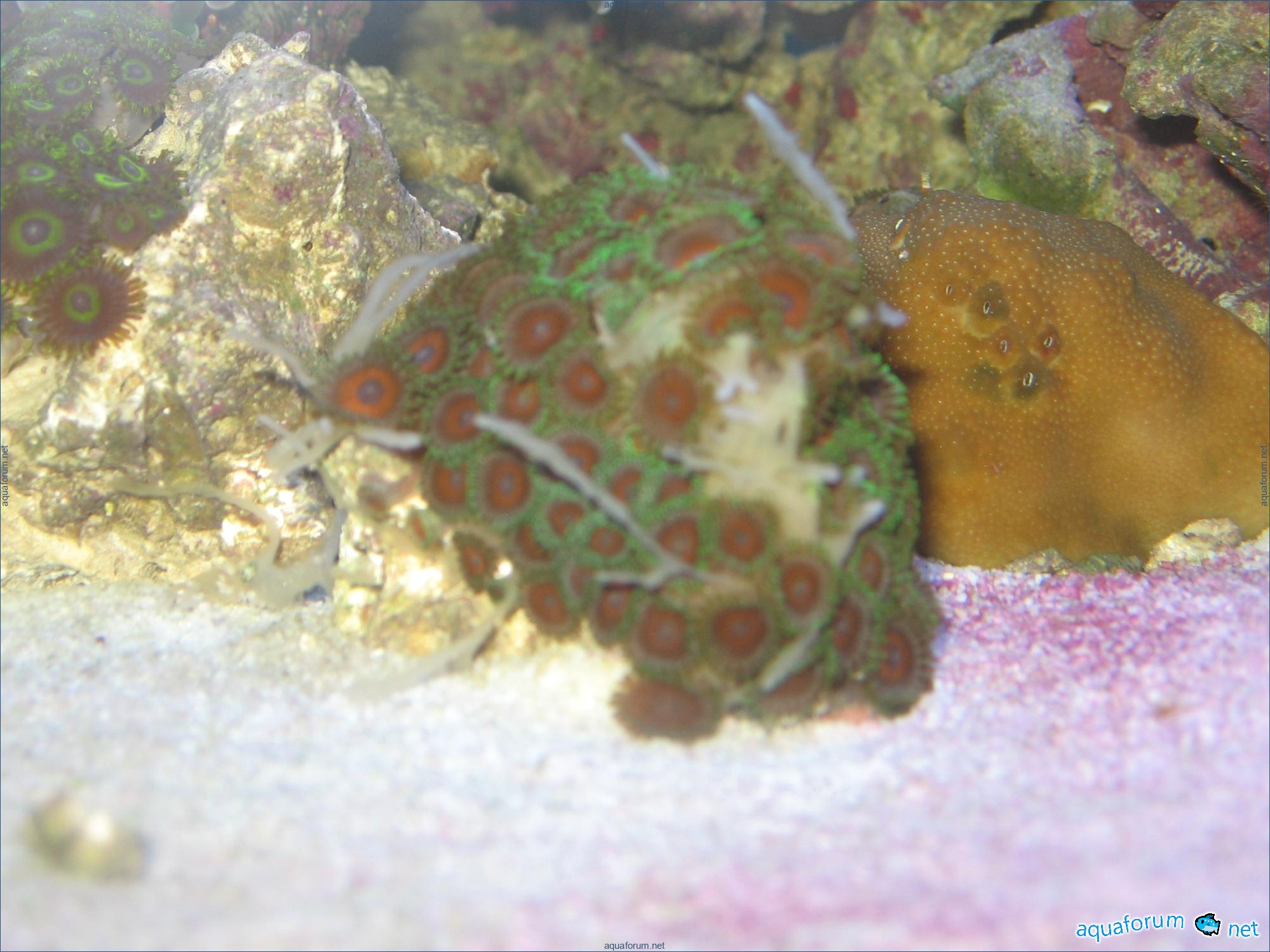 Chào buổi tối, các bạn trên diễn đàn. Trên zoanthus, từ cơ thể mọc ra những mầm không rõ ràng. Ban đầu chúng ít, bây giờ chúng đã phát triển mạnh và gây áp lực lên thuộc địa, không cho polyp mở ra. Có ai đã gặp hiện tượng tương tự, làm thế nào để đối phó với điều này? Xin lỗi vì chất lượng ảnh kém.